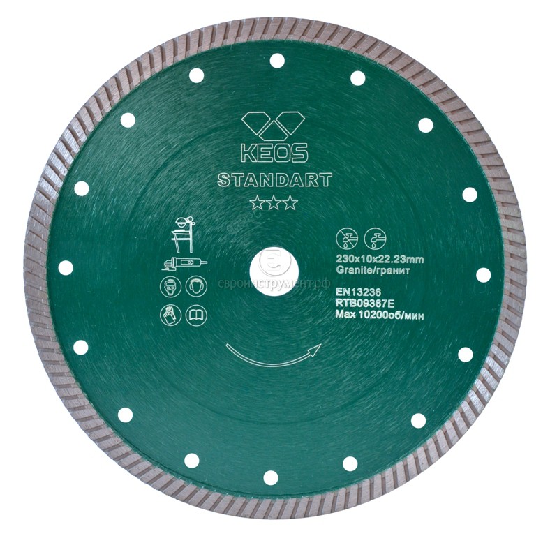 Алмазный турбированный диск Keos Turbo подходит для резки гранита, бетона, слабоармированного бетона, кирпича, бордюрного камня, брусчатки, песчаника, клинкера, базальта, искусственного камня как с применением воды, так и всухую. Применяется с угловыми шлифовальными машинами (болгарки), камнерезными станками и многодисковыми пилами.