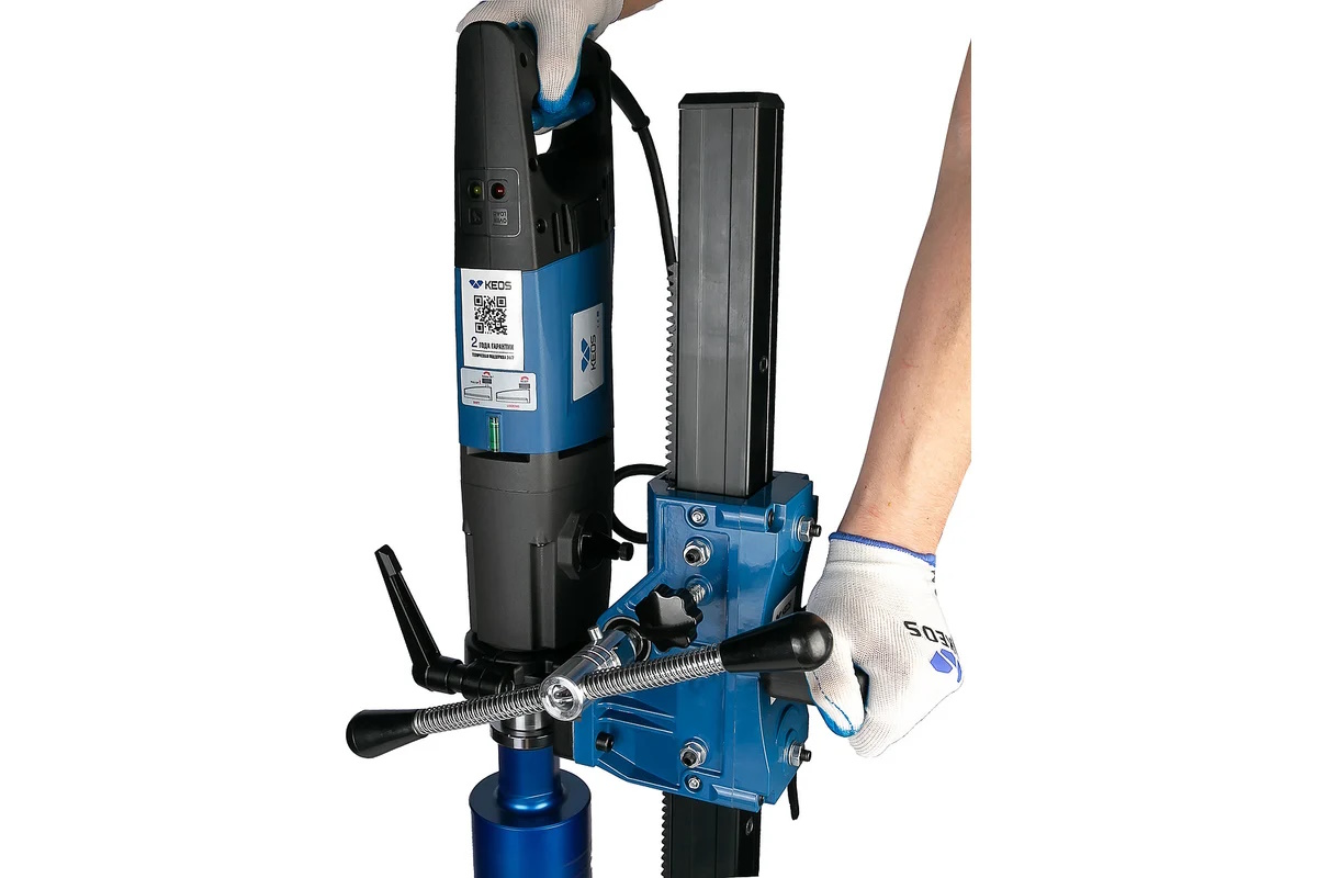 Комплект KEOS KS-180SET (мотор KS-180 + прямой штатив KS-250) используется для сухого сверления отверстий в бетоне, асфальте и кирпиче.