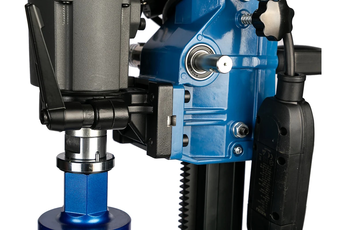 Двигатель с функцией микроудара может эксплуатироваться как вручную, так и с установкой на штатив. Максимальные обороты двигателя 1700 об/мин. Мотор оборудован быстросъемной муфтой для подключения пылесоса, а также водяной муфтой для сверления с подачей воды. Редуктор двигателя оснащен предохранительной муфтой.