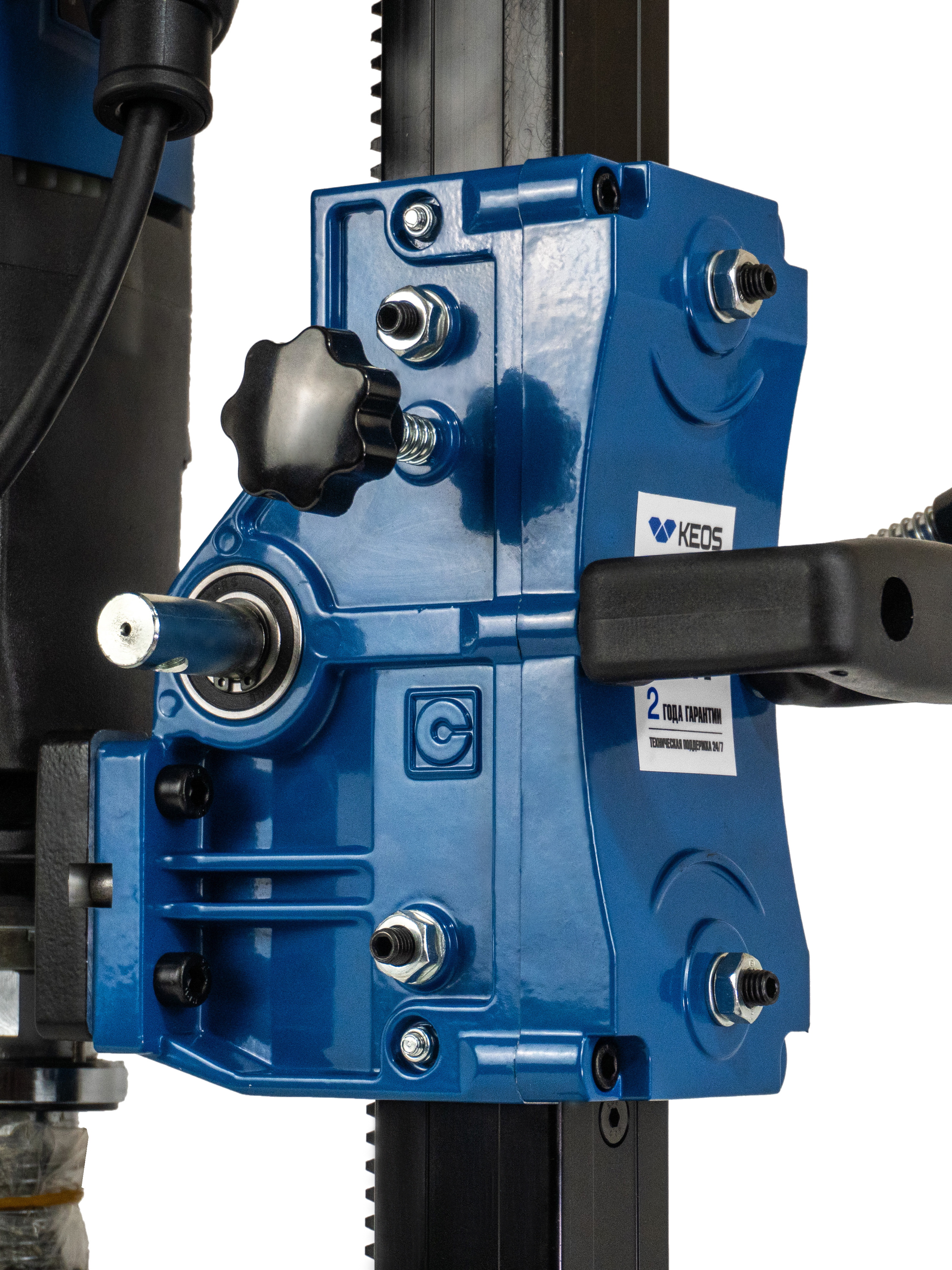 Двигатель алмазного бурения KEOS ПУЛЬСАР (PULSAR) KS-180 мощностью 2,3 кВт с функцией микроудара может эксплуатироваться как вручную, так и с установкой на штатив. Максимальные обороты двигателя 1700 об/мин. Мотор оборудован быстросъемной муфтой для подключения пылесоса, а также водяной муфтой для сверления с подачей воды. Редуктор двигателя оснащен предохранительной муфтой.