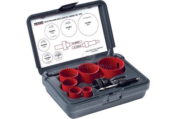 В наборах присутствуют универсальные быстрорежущие коронки для твердой, мягкой, инструментальной и нержавеющей стали, латуни, алюминия, чугуна, а также древесины с глубиной сверления до 38мм. Зубья коронок изготовлены из быстрорежущей стали марки M3. Ресурс и производительность коронок Ridgid с переменным шагом зубьев значительно лучше традиционных моделей со стандартным шагом.