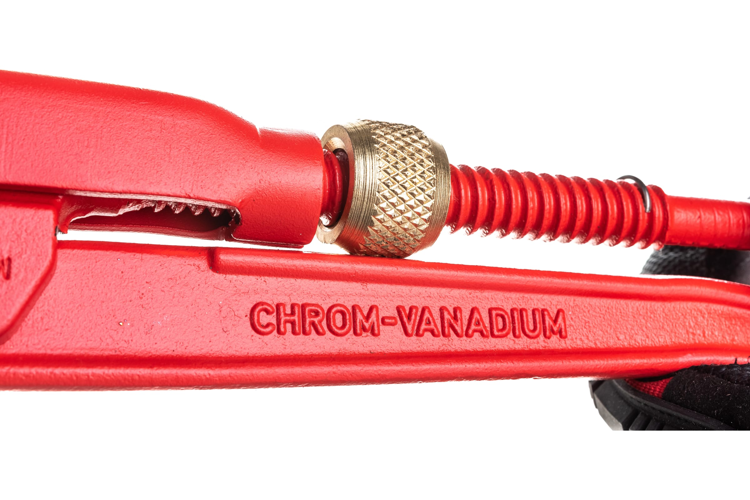 Ключ газовый с углом наклона губок 90°, предназначенный для моментального и надежного фиксирования гайки. Обладает эргономичной ручкой. Газовый ключ произведен из легкого и высокопрочного сплава хром-ванадия, что увеличивает устойчивость к износу зубцов губок.
