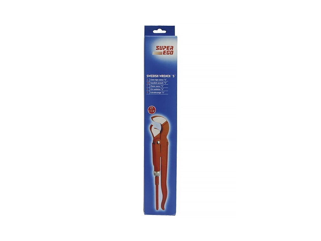 Ключ газовый, ковано-штампованный. Хромванадиевый сплав. Оснащен усиленной гильзой, шлифованными губками и узким зевом. Использованием ключа "Супер С" достигается полная фиксация трубы в трёх местах.