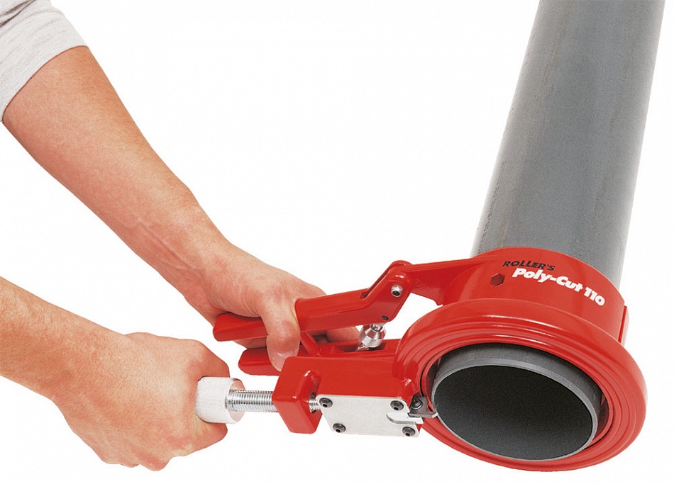 Специальный инструмент рассчитан на качественную резку всех стандартных видов водосточных труб. В процессе резки производится протаскивание, а значит отсутствует необходимость в последующем протаскивании трубы. Равномерный зажим трубы не деформирует и обеспечивает чистую посадку к стыковой трубе.