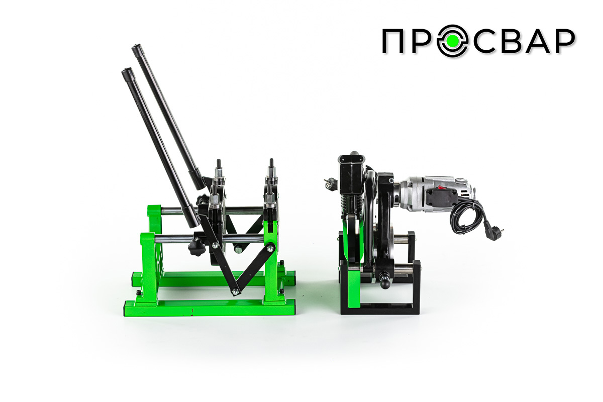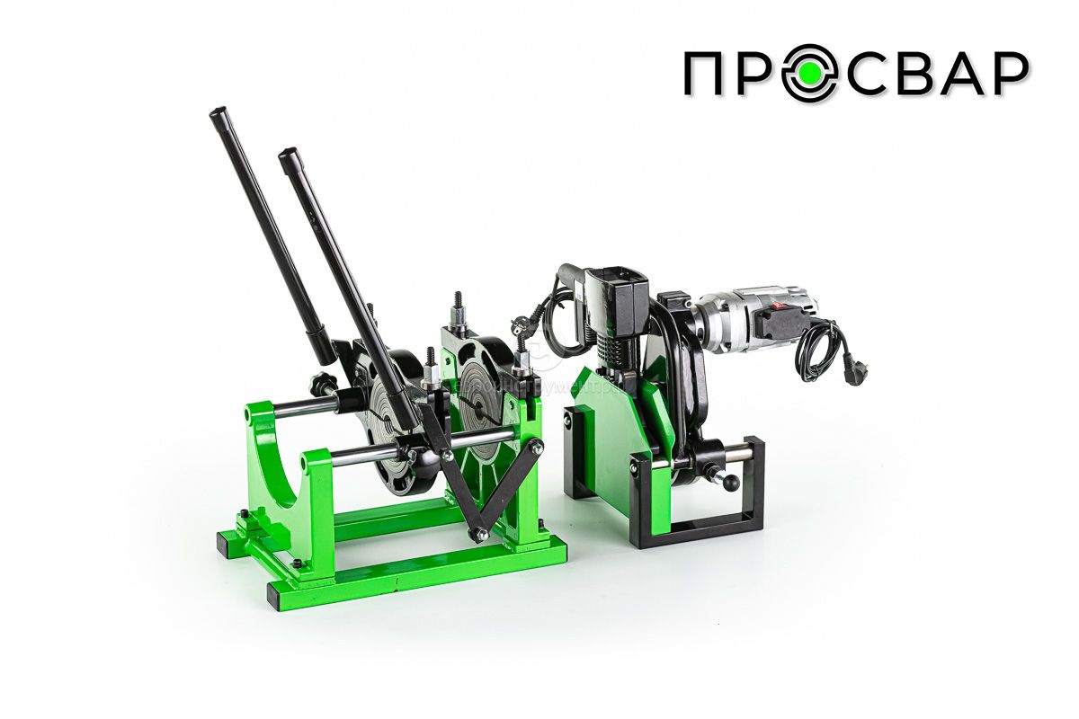 2-х зажимный аппарат с фиксатором и механическим приводом. Центратор с комплектом вкладышей 40,50,63,75,90,110,125,140 мм. Электроторцеватель, нагревательный элемент, подставка.
