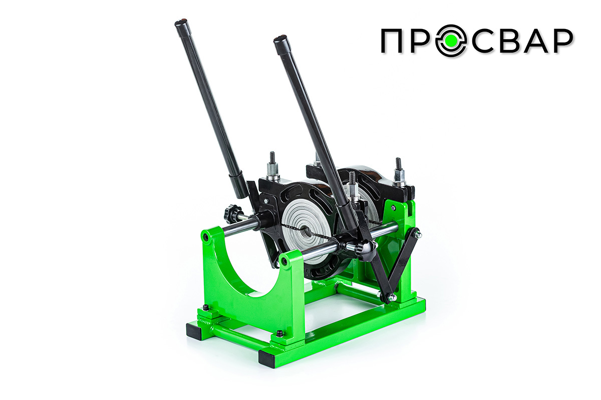 Рычажный тип 2-х зажимный аппарат с механическим приводом. Центратор с комплектом вкладышей 40,50,63,75,90,110,125,140 мм. Электроторцеватель, нагревательный элемент, подставка.