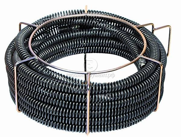 Спираль с сердцевиной 22мм x 4.5м не подвергается попаданию грязи в витки. Подходит для прочистки трубопроводов Ø50-150 мм.