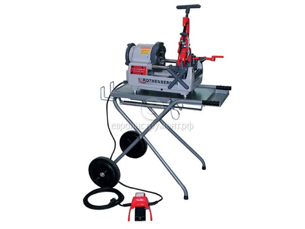 Удобная тележка со складной конструкцией предназначается для установки и транспортировки станка для нарезания резьбы Ropower 50R. Тележка на пластмассовых колесах, с подставкой для инструментов и держателем для педали.