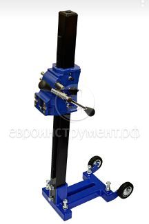 Надежная стальная опорная плита с колесами для удобства транспортировки. Штатив  предназначен для крепления анкерным способом на шпильку или распорной штангой. Максимальный диаметр 350 мм. Максимальная мощность установки 4 кВт. Рабочий ход 550 мм. Высота штатива 850 мм. Вес 18,5 кг.