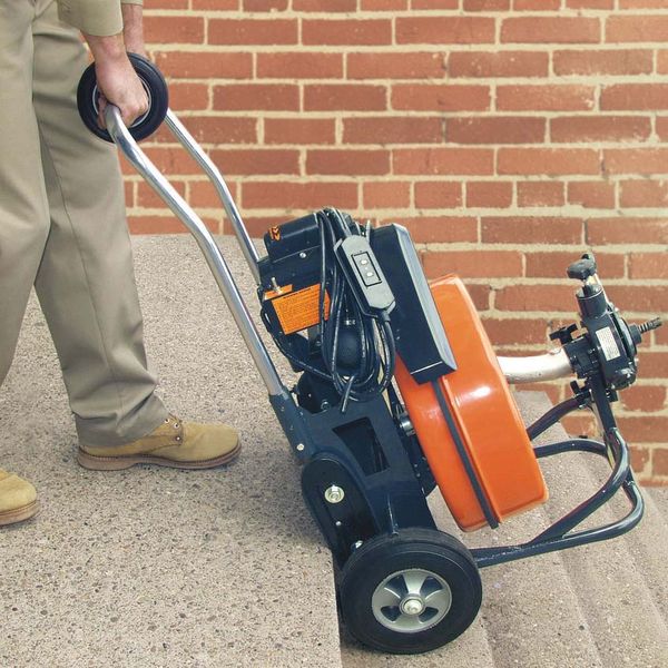 • Прочистная машина оснащена большими колесами 250 мм с блокиратором, гусеницами для подъема по лестницам и колесом на ручке для погрузки в автомобиль