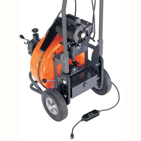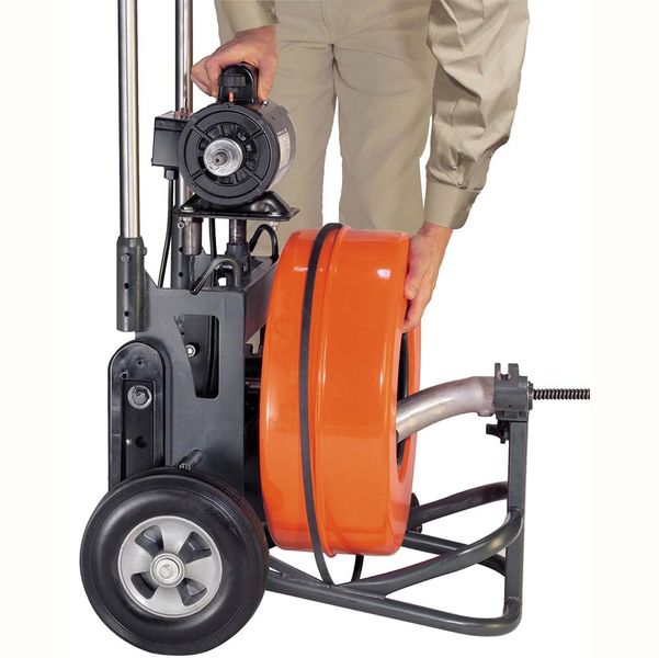 - Прочистная машина оснащена большими колесами 250 мм с блокиратором, гусеницами для подъема по лестницам и колесом на ручке для погрузки в автомобиль