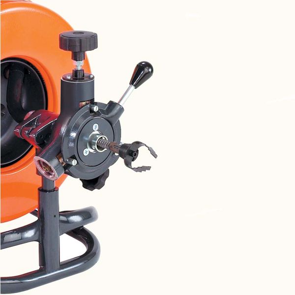 Прочистной аппарат барабанного типа включает: барабан для спирали, мотор с реверсом, шнур питания, УЗО, 8-дюймовые колеса, водонепроницаемая педаль, кожаные перчатки, с устройством автоматической подачи спирали, спиралью толщиной 13 мм х 22,5 метра, 7 насадками, гибким лидером