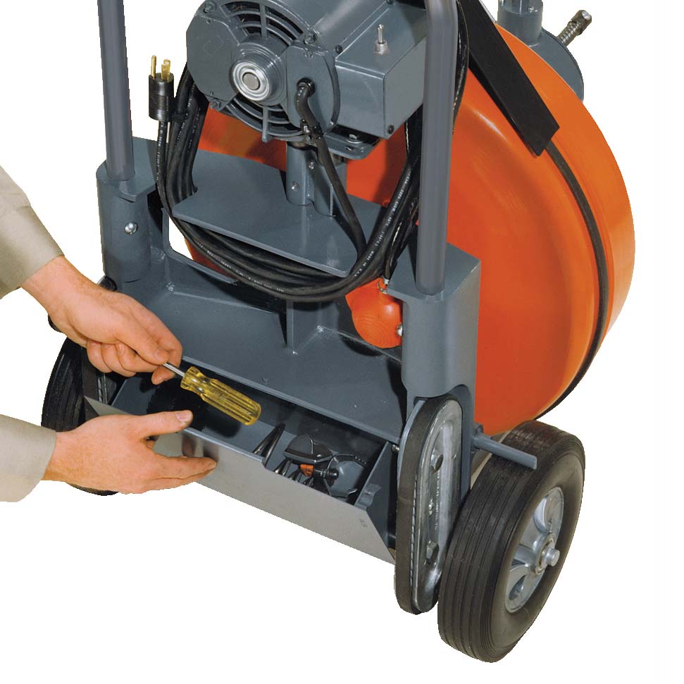 Отличие этих прочистных машин General Pipe Cleaners от аппаратов “Оса” в том, что во время работы не требуется удерживать инструмент в руках. Аппарат запускается ножной педалью. Скорость вращения привода регулируется усилием на педали. Спираль меняется за секунды, т.к. можно заменить картридж со спиралью, не вынимая спираль.