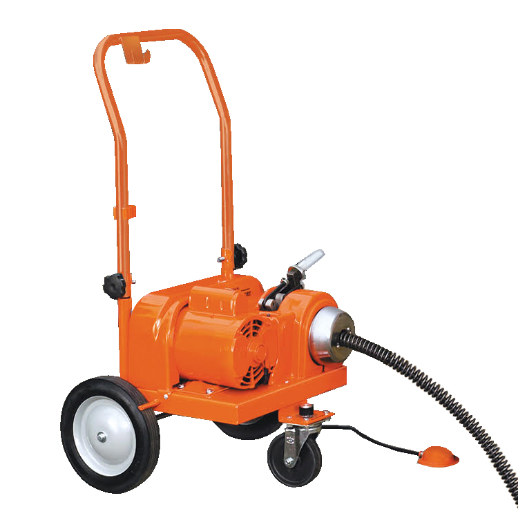 Прочистной аппарат барабанного типа включает: барабан для кабеля MR-200-2, мотор с реверсом и редуктором, шнур питания, 8-дюймовые колеса, водонепроницаемая педаль, рабочие перчатки, с устройством автоматической подачи спирали, спиралью толщиной 13 мм х 22,5 метров, 4 насадками