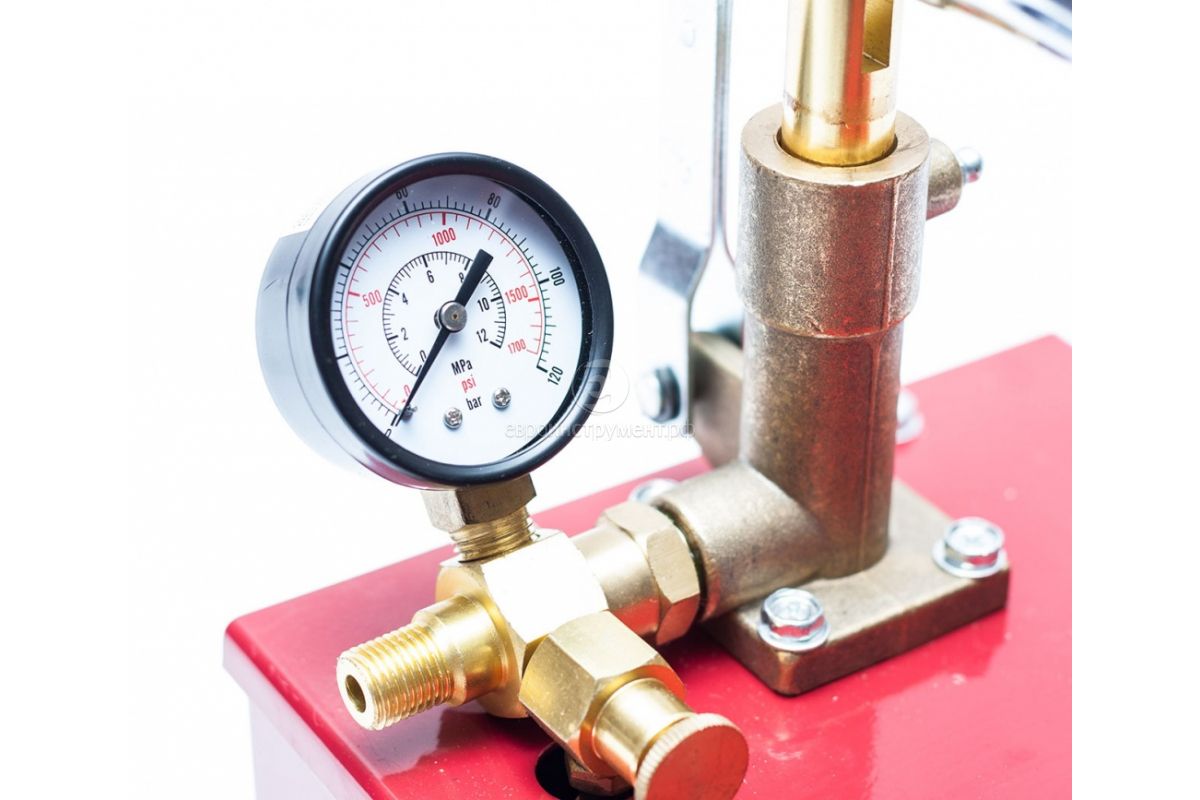 Его конструкция обеспечивает надежную работу в течение продолжительного времени, т.к. все детали его гидравлической системы изготовлены из нержавеющих материалов, а клапаны всасывания и нагнетания защищены от попадания грязи при всасывании и сливе рабочей жидкости. Постоянство давления в испытываемой системе обеспечивается двумя клапанами и вентилем с шаровыми запорами.