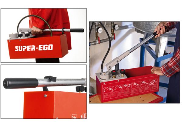 Ручной опрессовочный насос Super Ego RP50-S предназначен для испытания давлением 0–60 бар (проверки герметичности) трубопроводов и резервуаров в системах отопления и водоснабжения жилых и промышленных помещений. Соответствует самым высоким требованиям, предъявляемым к процессу испытания. Может применяться с водой или маслом.