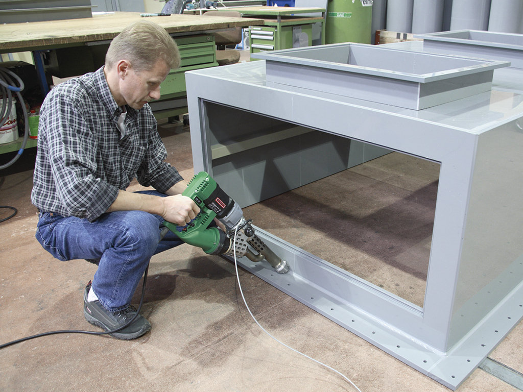 Экструдер ручной производительностью до 1,8 кг/ч благодаря компактным размерам и прочности конструкции способен осуществлять сварку в узких, труднодоступных местах, в том числе подходит для использования на строительных площадках.
