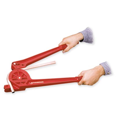 Ручной трубогиб Rothenberger ЕВРОБЕНД УЛЬТРА рычажного типа создан для гибки тонкостенных, металлопластиковых и мягких медных труб до максимального угла 90°. Материал изготовления механического привода - прочная пластмасса с содержанием стекловолокна. Инструментом можно осуществлять гибку по заданным показателям на весу.