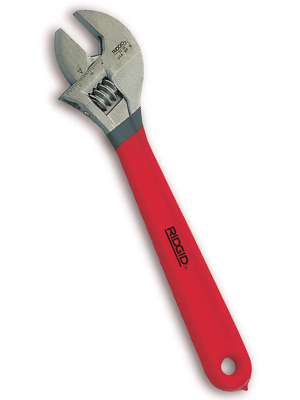 Сантехнический ключ для раковин из легированной стали обладает подпружиненными губками, благодаря чему создается удобство работы одной рукой и реализуется большая полезная работа при приложении минимальных усилий.