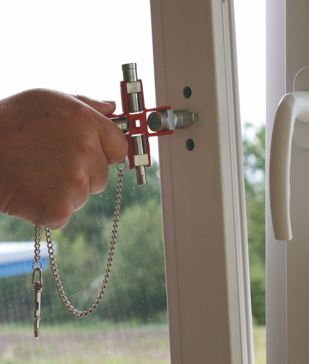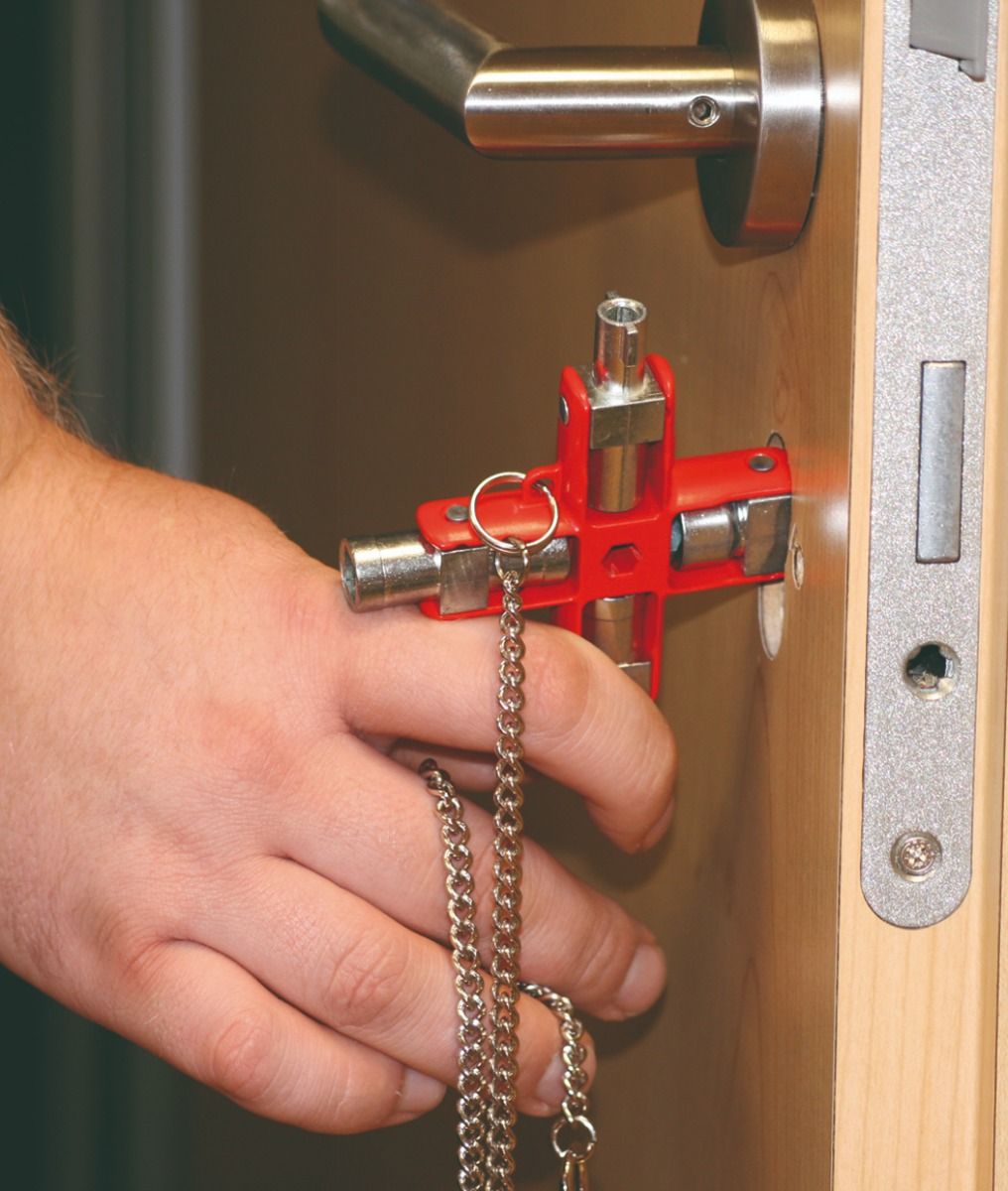 Коммуникации, электрические и газовые счетчики, кондиционеры, строительные работы (ручки дверей и окон), слив радиаторов, с квадратной насадкой и магнитом в карабине