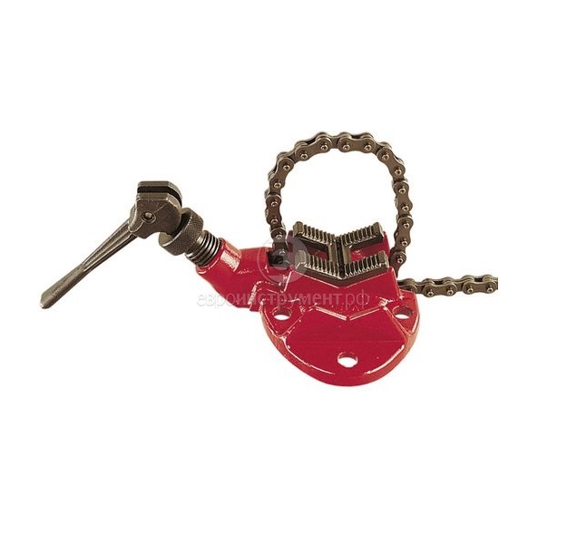 Винт для предварительной регулировки. V-образная зубчатая опора. Эксцентриковая кованая рукоятка для быстрого зажима. Губки и цепь из закаленной стали.