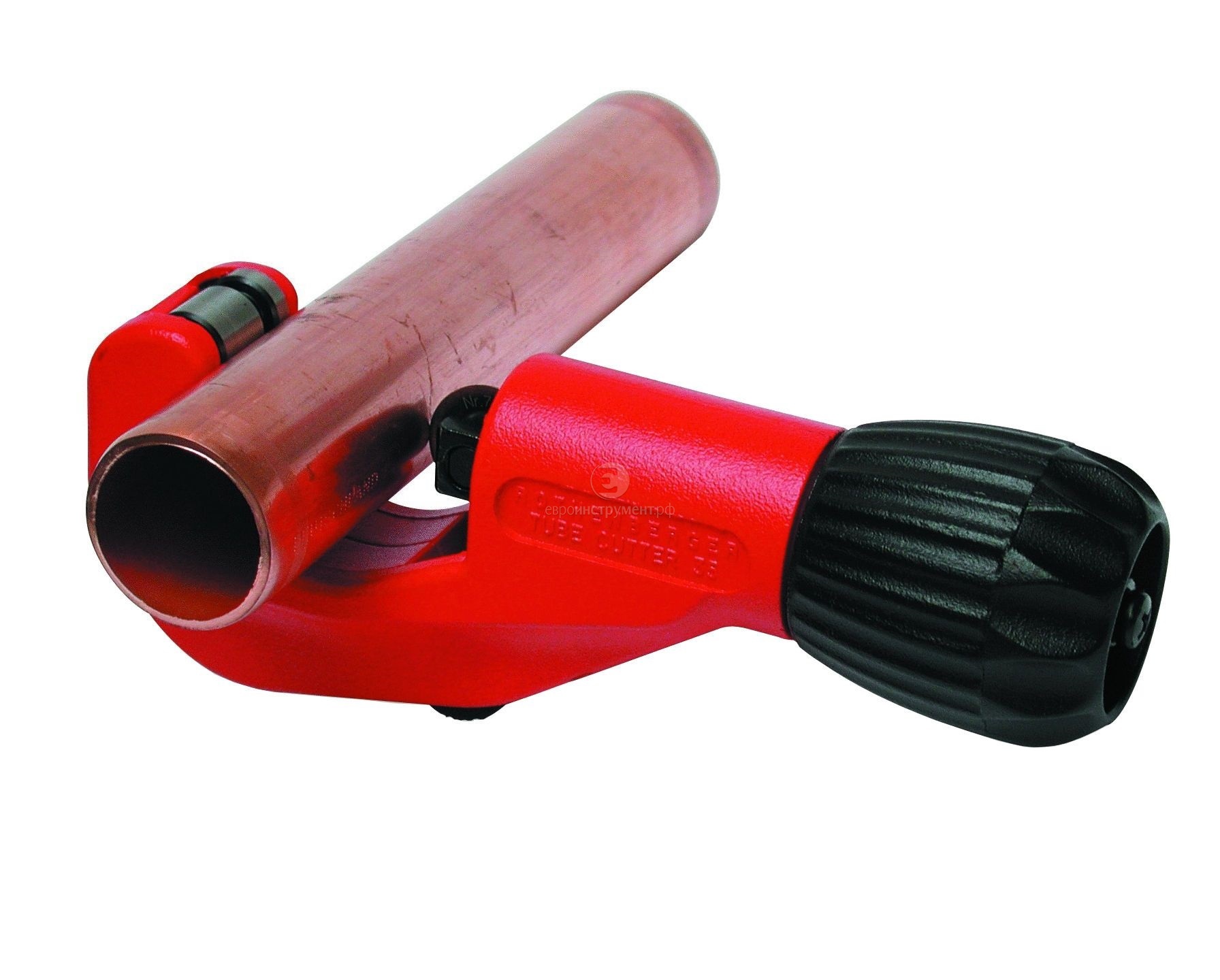 Инструмент отлично подходит для получения ровных срезов под углом 90° на трубах из меди, алюминия, латуни и стальных нержавеющих трубах с тонкими стенками. У трубореза имеется удобная складная зенковка.