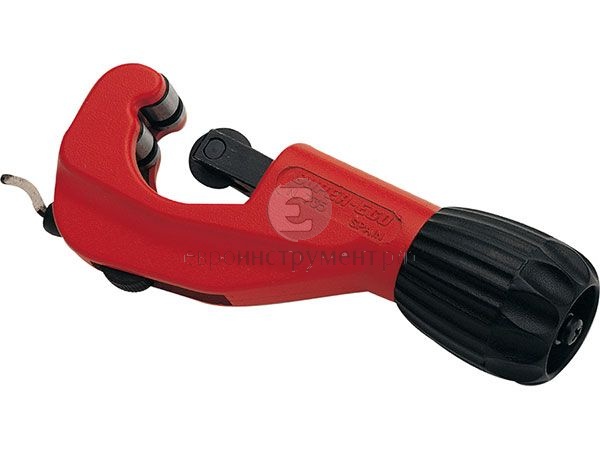 Инструмент отлично подходит для получения ровных срезов под углом 90° на трубах из меди, алюминия, латуни и стальных нержавеющих трубах с тонкими стенками. У трубореза имеется удобная складная зенковка.