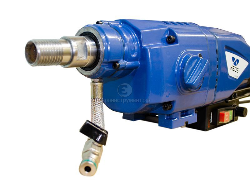 Двигатель алмазного бурения KEOS KS-250 мощностью 2,8 кВт фиксируется на штативе при помощи 4-ех болтов. Максимальный диаметр сверления составляет 250 мм. Односкоростной двигатель используется для мокрого сверления. Корпус двигателя из металла защищает его от повреждений и обеспечивает эффективный теплоотвод. Все элементы управления находятся в одном месте на специальной панели, что обеспечивает удобство эксплуатации. Используется со штативами KEOS S-250 и KEOS S-350.