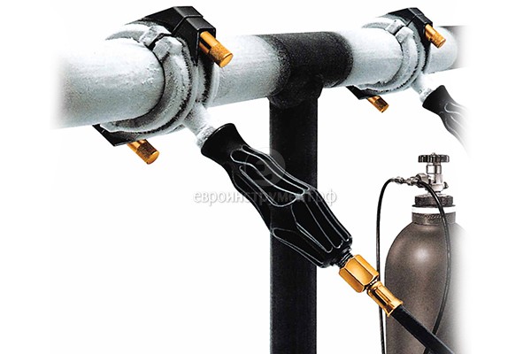 Устройство разработано с целью использования в ходе ремонтных работ для заморозки заполненных труб из меди, стали и пластика диаметром от 1/8 до 2 дюймов (10 - 60 мм).
